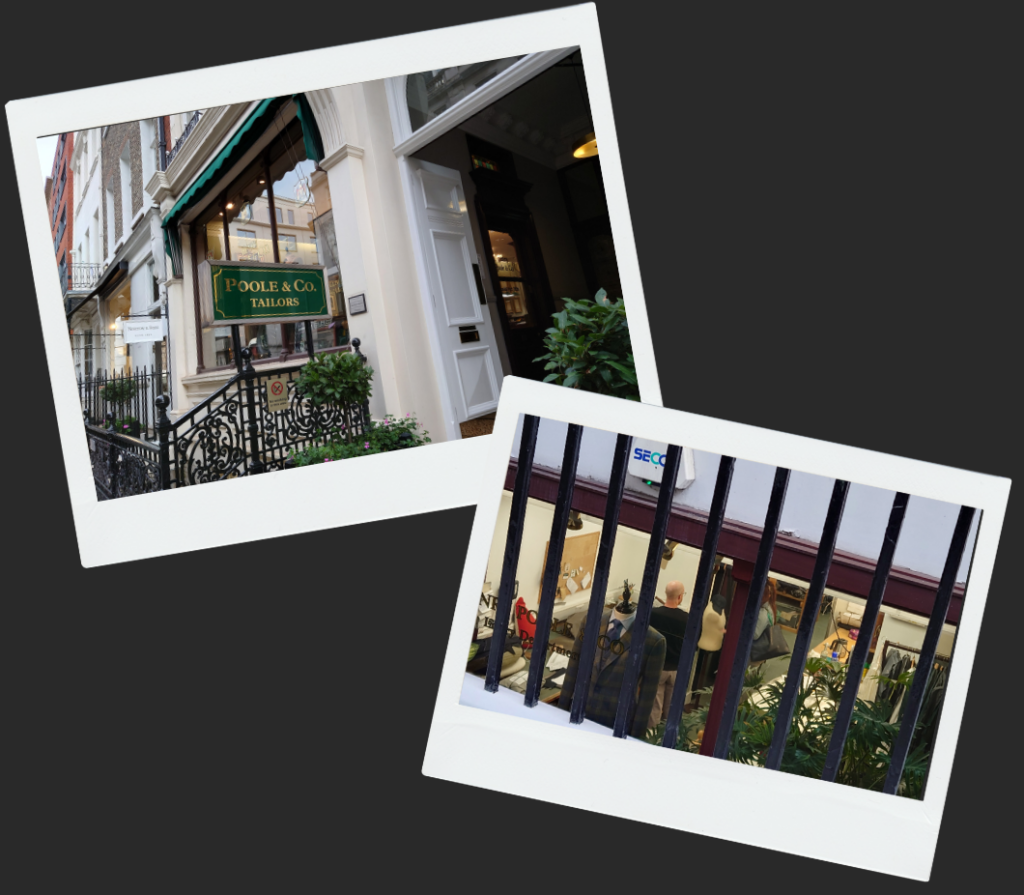 Na mijn bezoek aan Camberry ging mijn ontdekkingsreis verder naar Savile Row, een straat die synoniem staat voor traditioneel Brits kleermakersvakmanschap. Het betreden van deze straat voelde als een stap terug in de tijd, omringd door de erfenis van enkele van ’s werelds meest gerenommeerde kleermakers.